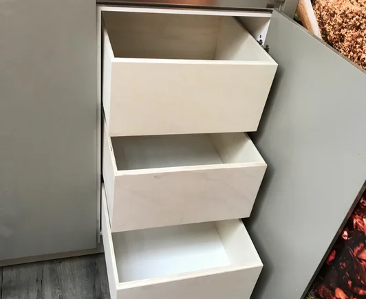 Op maat gemaakte lades sluiten bovendien perfect aan op bestaande keukenkasten, wat zorgt voor een strak en rustig geheel.